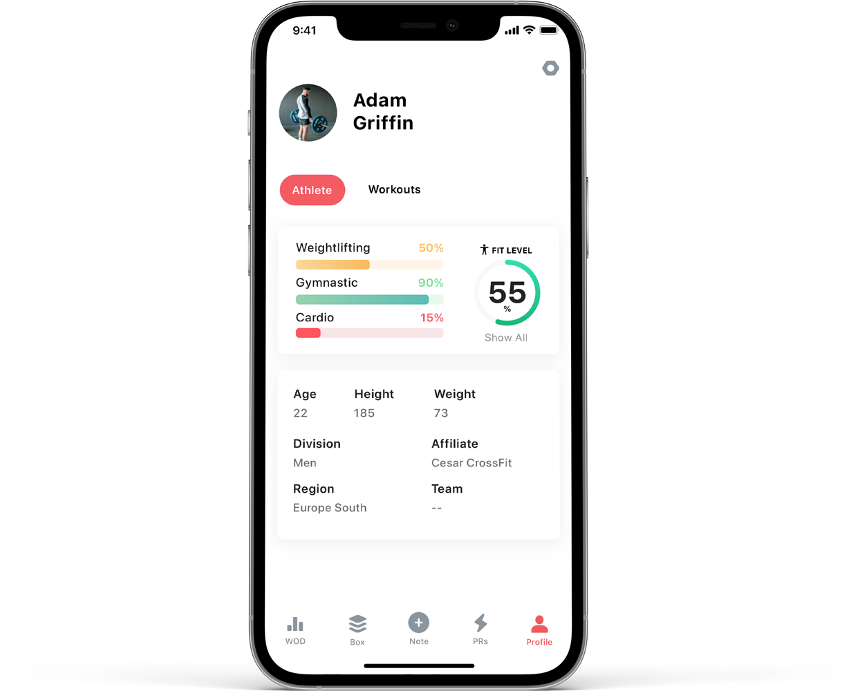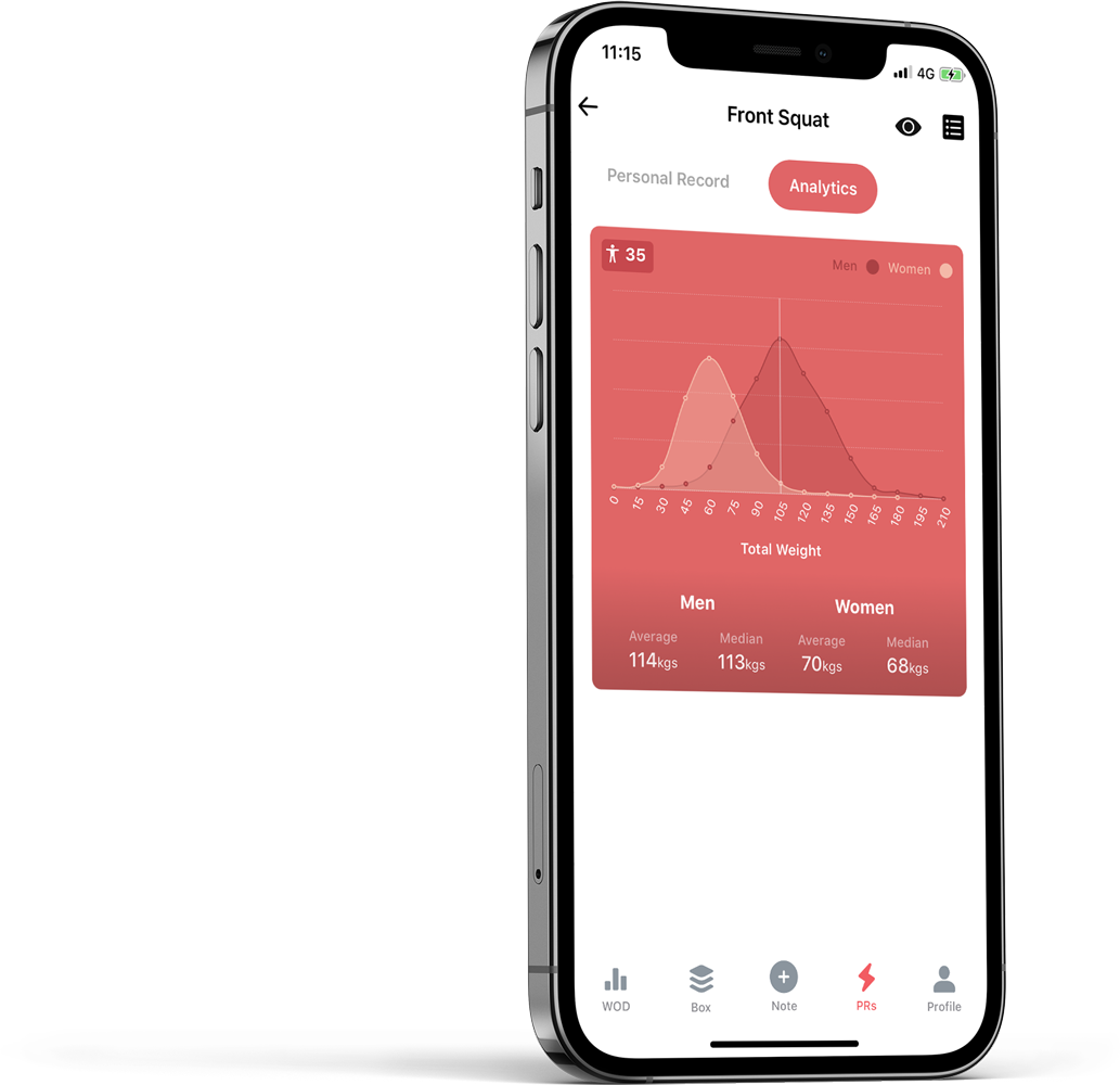 Better understand your progress, by keeping track of your WODS, PRs and Benchmarks with stunning graphs.